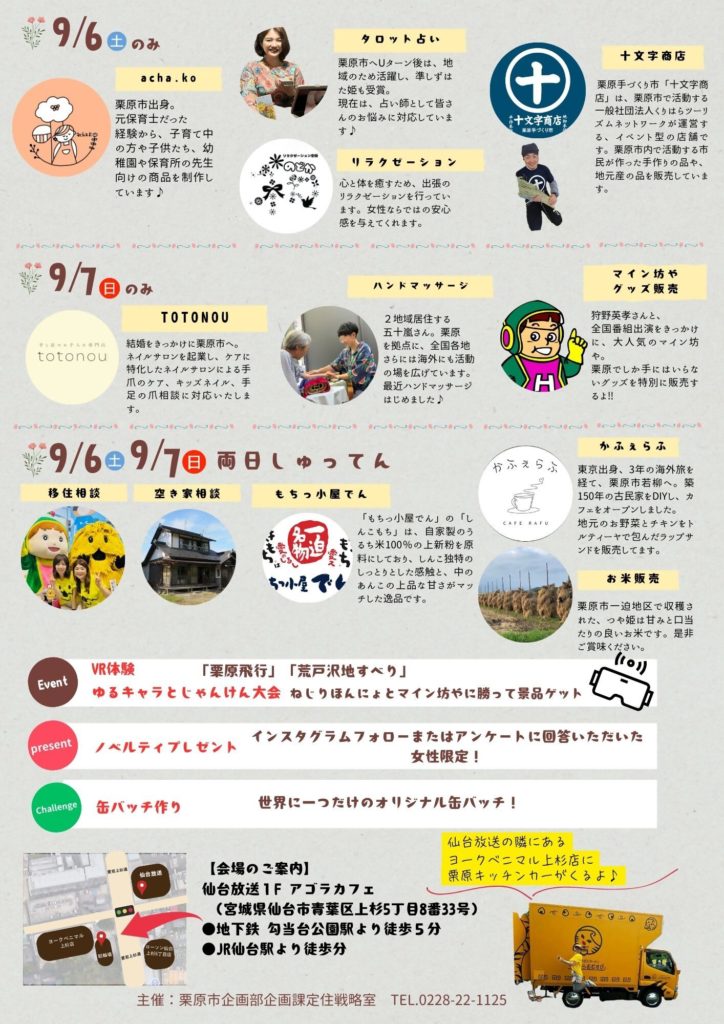 栗原市の魅力をたっぷりお届けする、仙台くりはらオフィスを、9月6日(土)・9月7日(日)の